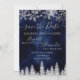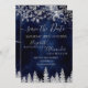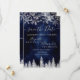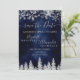 Time to celebrate your winter wonderland wedding theme with this luxury silver glitter snowflakes sparkles and silver glitter pine tree forest on an elegant festive navy blue watercolor background, featuring a modern cool script font typography. A chic and elegant wedding save the date card.