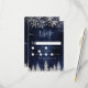 Time to celebrate your winter wonderland wedding theme with this luxury silver glitter snowflakes sparkles and silver glitter pine tree forest on an elegant festive navy blue watercolor background, featuring a modern cool script font typography. Perfect rsvp card for your winter wonderland wedding.