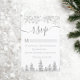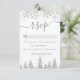 Time to celebrate your winter wonderland wedding theme with this luxury silver glitter snowflakes sparkles and silver glitter pine tree forest on an elegant festive white background, featuring a modern cool script font typography. Perfect rsvp card for your winter wonderland wedding.