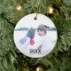 For a one of a kind Christmas keepsake or personalized gift just add your photo, name and year to this 2 sided modern rustic silver snowflake ornament. The front of this round ceramic ornament features your favorite family photo behind a soft white gradient overlay on the bottom half that lets the year to shine. This unique photo ornament reverses to a faux soft gray and white wood background and a single faux silver glitter snowflake in the center with room along the bottom for your name or custom message, but you can delete the placeholder text if you wish. Create your own photo ornaments for the Christmas holidays with this simple modern silver snowflake design template that coordinates with the full collection of matching items in the ArtfulDesignsByVikki store.