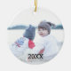 Silver Snowflake 2 Sided Photo Christmas Ceramic Ornament
