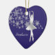 This pretty Holiday ornament features a silver ballet dancer in front of a spray of silver snowflakes. The image is placed on a blue background. Your text is in matching silver at the side. The back of the ornament has the same blue background and snowflakes, and another text field for you to customise. Wonderful for the one who loves dance or ballet.