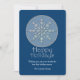 Stylish flat style Christmas greeting card done in a federal blue background graphics of a silver tone snowflake set in a silver glittery circle. Silver tone graphic text reads Happy Holidays. White custom text, on the bottom, is ready to personalise to suit your company needs.