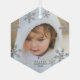 This personalised photo ornament with a scatter of elegant faux silver glitter snowflakes and your optional custom text in dark grey is a cute way to display treasured memories. These custom glass Christmas ornaments in a hexagon shape allow light to shine through so the minimalist 7 silver snowflake design and your picture will peek through on the back as they hang on your Christmas tree. Easy to personalise, just add your photo via the provided template and then add your text in dark grey or delete and clear to remove the placeholder text if you prefer your ornaments without wording. So add your photo behind the elegant faux silver glitter snowflake design and create your own customised Christmas ornaments, maybe one for everyone in the family for a matching set. Fun for kids, adults, family and friends, these personalised ornaments featuring your photo and silver snowflakes make great keepsakes that you will treasure for years to come.