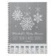 A pretty gender neutral design with a snowflake mobile that hangs above a baby crib on these grey, silver look white snowflake winter wonderland themed baby shower guests book for a new mother to be of a baby boy or girl. Customise the front of this guest book to say whatever you want. Artwork © Chrissy H. Studios, LLC. All Rights Reserved.