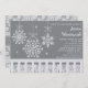 A pretty snowflake mobile hangs above a baby crib on these grey, silver and white snowflake winter wonderland themed baby shower invitations for a boy or girl. Artwork © Chrissy H. Studios, LLC. All Rights Reserved.