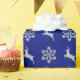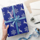 This elegant holiday wrapping paper features an alternating pattern of silver faux glitter reindeer and snowflake images. The images are placed on a dark royal blue background. Elegant and festive for the Holiday Season, and throughout the winter! *Please note - the image is printed and contains no actual glitter.*