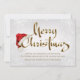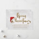 Corporate Christmas card with gold Merry Christmas script and red Santa hat on a beautiful silver white snowflake background. This snowflake corporate Christmas card is easily customised by simply adding your message and logo in the font style and colour of your choice.