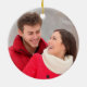 Design your own keepsake or gift ornament with two photos on this double-sided ceramic ornament featuring silver hand-drawn snowflakes against a white background and personalised with your custom text on the front.. The design is ideal for a variety of photos or special occasions (i.e., family, baby, pet, newlyweds, engagements, couple, first Christmas, new home, winter vacations, etc.) The back side features a full-bleed photo. (PHOTO TIP: Choose photos with the subject in the middle and/or pre-crop them into a square shape BEFORE uploading and use the CHANGE tab in the PERSONALIZE section.) The text font style, size and colour can be changed by clicking on the "Click to customise further" tab. OTHER STYLES: Note that other ornament styles to choose from may not offer back side printing. Contact the designer BEFORE ORDERING via Zazzle Chat or makeitaboutyoustore@gmail.com for design modifications or assistance with personalising or transferring the design to another product.