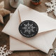 Merry Christmas Calligraphy Script with black background and silver snowflake sticker template. Personalise it and use for Holiday cards mailing.