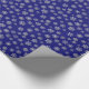 Silver, metallic-look snowflakes against a deep, sapphire blue background