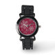Silver snowflakes on dark red watch
