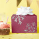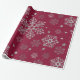 Silver snowflakes on dark red wrapping paper
