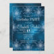Snowflakes elegant winter birthday party invitation template on a dark navy blue watercolor background featuring a frame of silver white and blue snowflakes and a rustic chic typography script. ++++++++++++++++++++ Easy to personalise with your details! +++++++++++++++++ The invitation is suitable for winter chic mountains resort, rustic country farmhouse or cottage birthday or other anniversary celebrations.