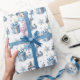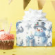 A Cute Wrapping Paper Design With Silver And Blue Snowmen For Christmas