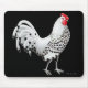 Original fine art design of a colourful Silver Spangled Hamburg rooster by designer Carolyn McFann of Two Purring Cats Studio on a customisable mousepad for chicken fans.