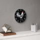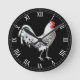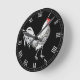 Original fine art design of a Silver Spangled Hamburg rooster by artist Carolyn McFann of Two Purring Cats Studio printed on a quality wall clock for chicken fans.