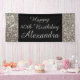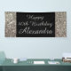 Faux glitter-effect silver elegant personalised 40th birthday party banner wall decoration. Beautiful and festive 40th birthday banner custom printed with the guest of honour women's name! Black and silver twinkling photographic image of sparkles to celebrate the guest of honour's big 40th day.