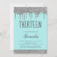 Silver and Teal Aqua Robin's Egg Blue Sparkly Dripping Glitter Girl's becoming a teen 13th Thirteenth (Thirteen) Birthday Party Invitation . This is the perfect kids 13th - turning Thirteen Girl Birthday Invitation for a Modern Sparkle Glitter Sparkle Girly Birthday Party. Please contact the designer for matching customised items.