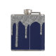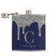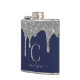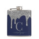 Silver Sparkle Glitter Drips Navy Blue Monogram Hip Flask