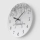 Silver Ombre Dripping Sparkle Glitter Monogram Name and Initial Serving Wall Clock. The Wall Clock makes the perfect gift for someone who loves silver sparkle glitter.