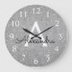 Silver Sparkle Glitter Monogram Name & Initial Large Clock