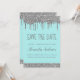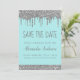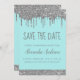 Silver and Teal Aqua Robin's Egg Blue Sparkle Dripping Glitter Sweet Sixteen - 16 Girl's Birthday Party Save the Date Invitation. This invitation is perfect for the Sparkle Glitter Sweet 16th Birthday Party looking to celebrate in elegant and modern style.