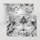 Silver Masquerade Party RSVP. Pretty silver and black diamond mask & feather jewels. Please note: All flat images!