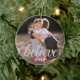 Silver Sparkly Believe Script Christmas Photo Ceramic Ornament
