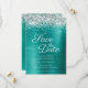Silver Sparkly Glitter Aqua Teal Ombre Foil Save The Date