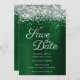 Silver Sparkly Glitter Dark Green Ombre Foil Save The Date