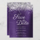 Silver Sparkly Glitter Dark Violet Ombre Foil Save The Date