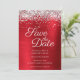 Silver Sparkly Glitter Red Ombre Foil Save The Date
