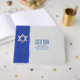 Stylish Bar / Bat Mitzvah celebration guest sign in book done in light grey, with a royal blue on blue geometric pattern, on the front left and covering the back. A silver tone Star of David and silvery ribbon accent the front of the book. Personalise the blue text for your child's special day.