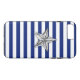 A silver chrome like star design on a navy blue stripes decor. A modern nautical gift for your device.