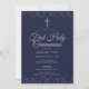 Silver Stardust First Holy Communion Navy Blue Invitation