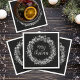 Twinkling silver stars, circles and dots surround the words "Merry Christmas" on black holiday paper napkins. MATCHING items in our store.