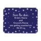 Painting of silver stars forming a fun border, on royal navy blue, with Save the date, and a placeholder for names and date, is printed on custom flexible magnets. The text is white and can be easily customised on the template form. There are matching items in this store. Thank you for shopping CherylsArt on Zazzle.