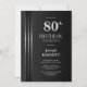 Silver Striped Black Grey 80th Birthday Party Invitation