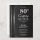 Silver Striped Black Grey 80th Surprise Birthday Invitation