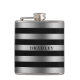 The flask itself is fine. It’s a cheap flask, obviously bought in bulk, however am prepared to overlook that. Given that it is a personalized item, I would have liked to have seen gift boxing instead of the generic packaging. Terrible printing, and/or quality. It’s a cheap, tacky vinyl. It is not cut straight and is also applied in a way that it is overhanging the bottom, causing the glue to catch on items and it will eventually roll and tear, damaging the wrap.