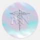 Silver Style RN Caduceus Medical Mother Pearl Classic Round Sticker