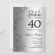 Silver Surprise 40th Birthday Party Invitation. Glam feminine design featuring botanical accents and typography script font. Simple floral invite card perfect for a stylish female surprise bday celebration. Can be customised to any age. Printed Zazzle invitations or instant download digital printable template.