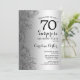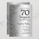 Silver Surprise 70th Birthday Party Invitation. Glam feminine design featuring faux silver foil, botanical accents and typography script font. Simple floral invite card perfect for a stylish female surprise bday celebration. Can be customised to any age. Printed Zazzle invitations or instant download digital printable template.