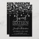 Elegant Silver & Black Sweet 16 Birthday Party Sparkly String Lights invitation template.