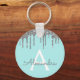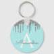 Silver Teal Aqua Blue Sparkly Glitter Monogram Key Ring