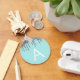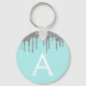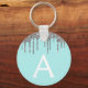 Silver Teal Aqua Blue Sparkly Glitter Monogram Key Ring