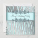 Silver Teal Blue Zebra Womans Birthday Party Invitation