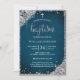 Silver Teal Diamond Lace Cross Baptism Invitation