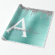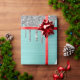 Silver Teal Glitter Brushed Metal Monogram Name Wrapping Paper